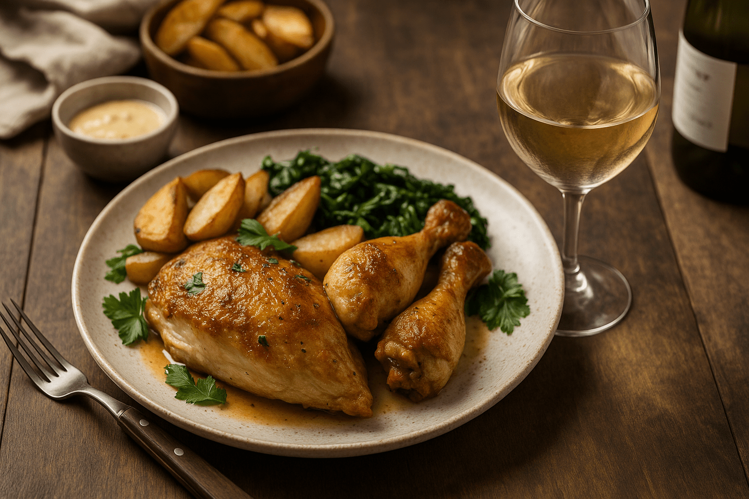 Bij kipgerechten past meestal witte wijn, waarbij de bereidingswijze het type wijn bepaalt. Gegrilde kip combineert goed met frisse wijnen zoals Sauvignon Blanc, terwijl romige of kruidige kip juist vraagt om een rondere witte wijn zoals Chardonnay of Viognier.