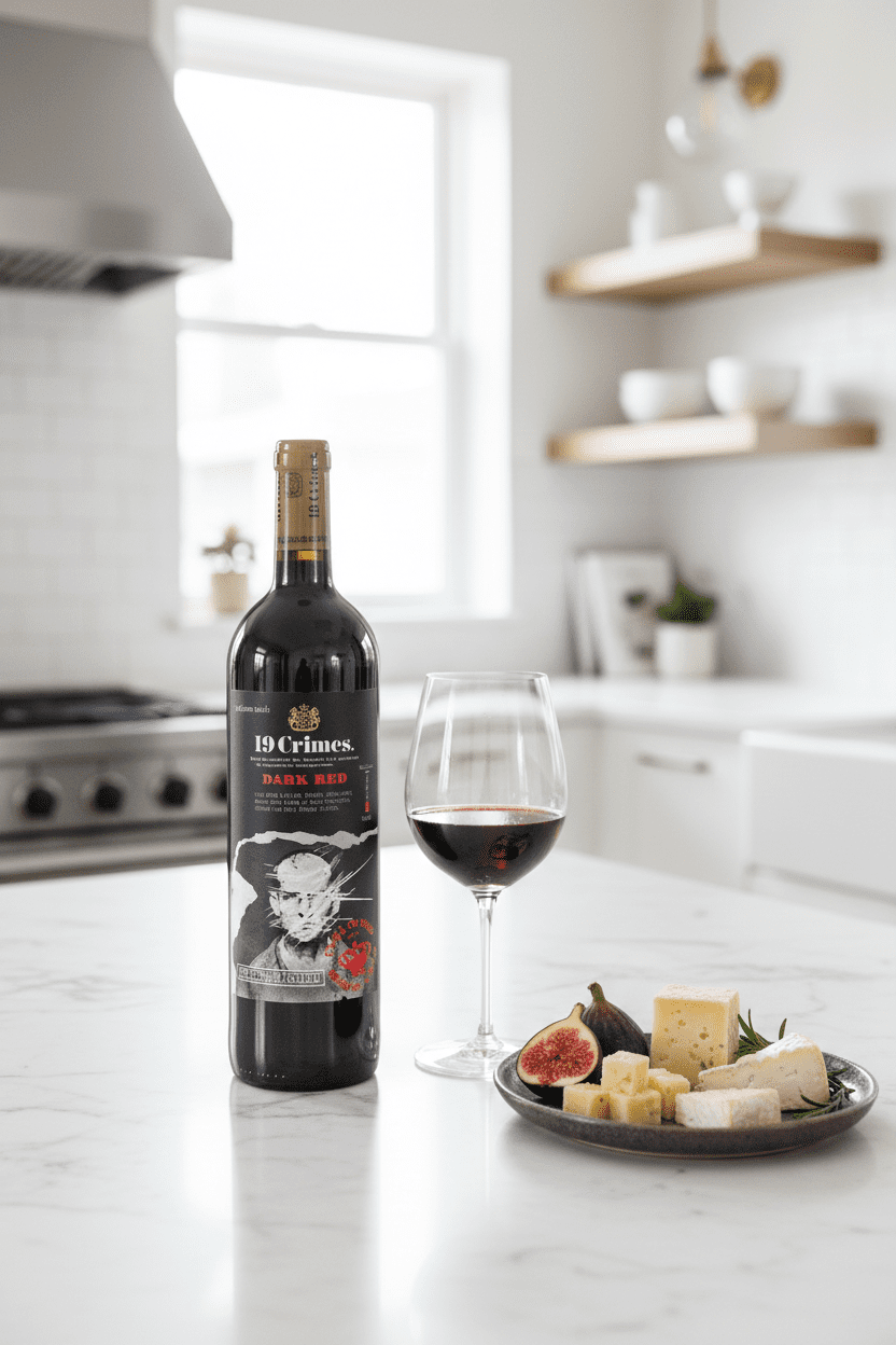 19 Crimes The Banished Dark Red is gemaakt van de druiven Shiraz en Grenache op 100% eiken vaten. Aroma`s van pure chocolade, vanille, bramen en pruimen. Volle en rond in de de mond met wat zoetheid en subtiel smaken kruidnagels en kaneelkruiden. De wijn heeft een mooie lange afdronk. Heerlijk bij een stoofpot, rundvlees en blauwe kaas