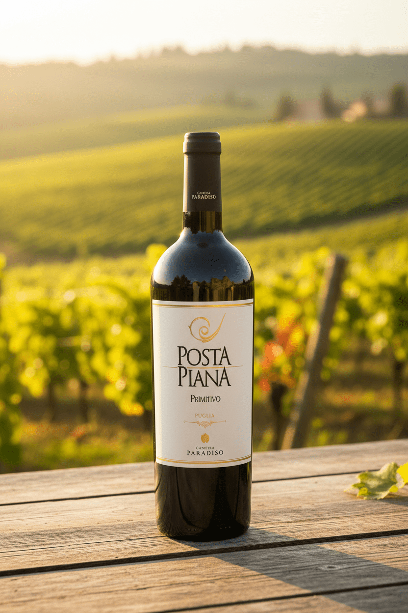De Paradiso Posta Piana Primitivo is een krachtige en volle rode wijn. De geur geeft tonen van rood fruit, lichte kruiden en vanille. De smaak is zacht en krachtig met indrukken van kersen, pruimen met een lichte kruidigheid en tonen van cederhout en vanille.